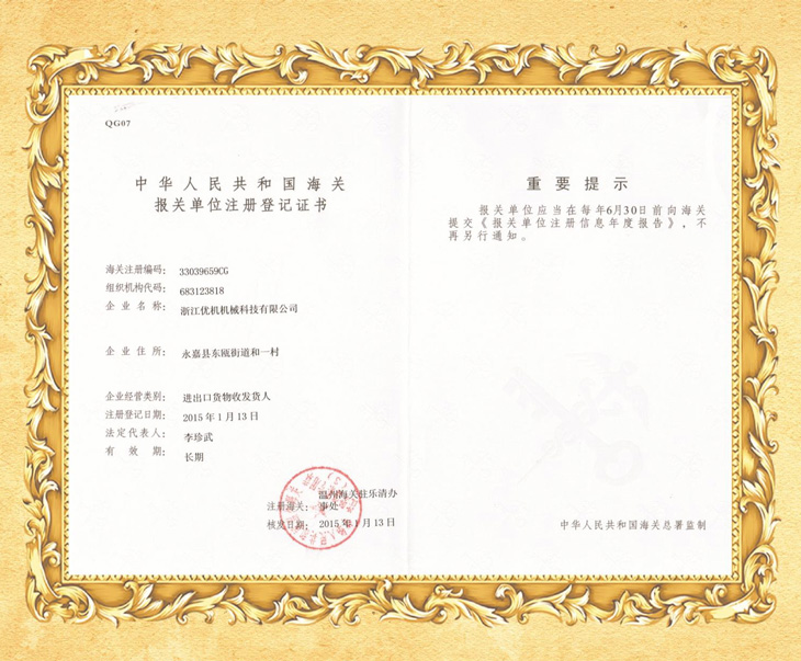 浙江省制造業首臺(套)產品證書