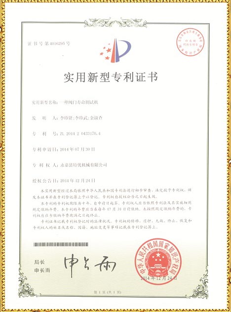 閥門壽命測試機技術專利