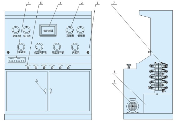 1. 數(shù)碼時(shí)鐘 2. 壓力表 3. 壓力表開(kāi)關(guān)